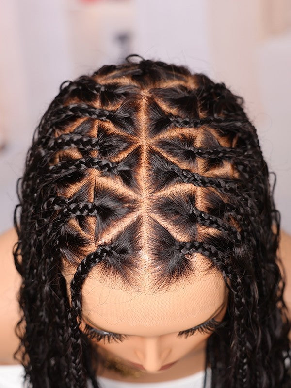 Lwigs Most-Fit Cap 180% Density Invisible Drawstring Real Skinlike HD Full Lace Knotless Long Braided Wig UD03