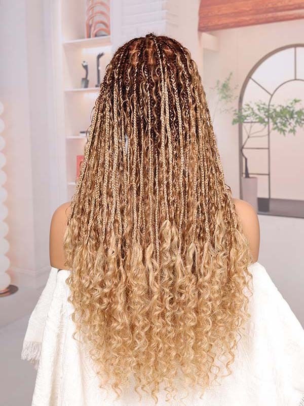 • Lwigs Most-Fit Cap Ombre Blonde Color Knotless Boho Curls Braided HD Full Lace Wigs With Baby Hair UD17 Lwigs Most-Fit Cap Ombre Blonde Color Knotless Boho Curls Braided HD Full Lace Wigs With Baby Hair UD17
